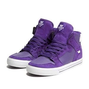 Since breaking away from its Y-chromosomed counterpart, the The Supra Women's Vaider High Top Skate Shoe has won the heartsAAAand cushioned the heelsAAAof many women the world over who are looking for midtop comfort to go with their sky-scraping style. Product FeaturesUpper Material: [ Grey/Magenta ] waxed suede; [ Purple Leather/Lavender ] nylon; [ Black Zebra/Pink/Royal ]...